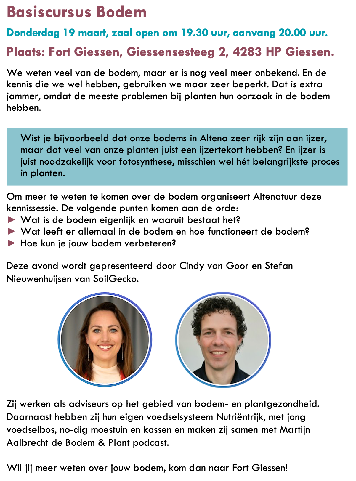 Agenda : - Basiscursus Bodem