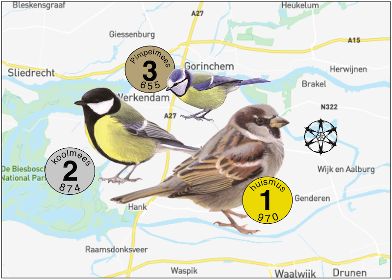 Jaarlijks is er in Nederland de Nationale Tuinvogeltelling in het laatste weekend van januari. Dit jaar telden bijna 140.000 tellers een kleine 2 miljoen vogels! Ook in Altena werd er fanatiek geteld. 355 deelnemers telden 5436 vogels. De top 3 is in Altena hetzelfde gebleven als vorig jaar. Vogelbescherming Nederland en Sovon organiseren en verzamelen elk jaar de gegevens en wij hebben ze van Altena in een tabel samengevat.